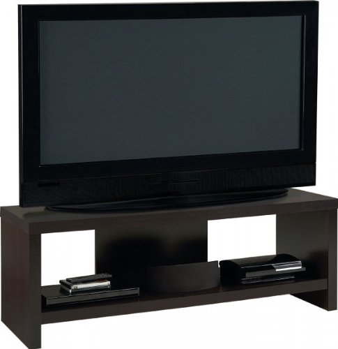 This TV Stand holds up to a 60" flat panel TV. It's finished in Black Forest contemporary stylish design to compliment any décor. It can support a maximum weight of 200 lbs. on the top shelf and 100 lbs. on the bottom shelf. Open bottom space for components or any other accessories. Easy to assemble with household tools.